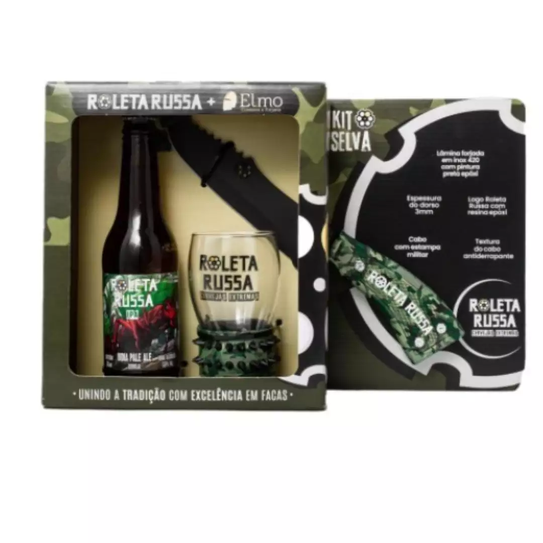 Kit Cerveja Roleta Russa Selva Faca Camuflada + Copo + IPA