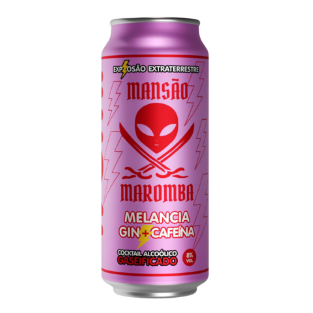 A bebida Mansão Maromba Gin Melancia é composta por gin, cafeína, extratos, aromatizantes, fermentado alcoólico de melancia, água, açúcar, glucose e dextrose.